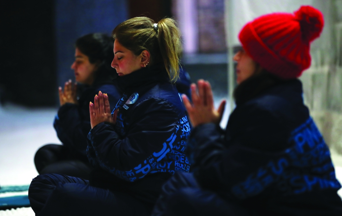 جلسة يوغا الثلج في ساحة التزلج الداخلية سكي دبي، الإمارات العربية المتحدة، 31 يونيو 2022.