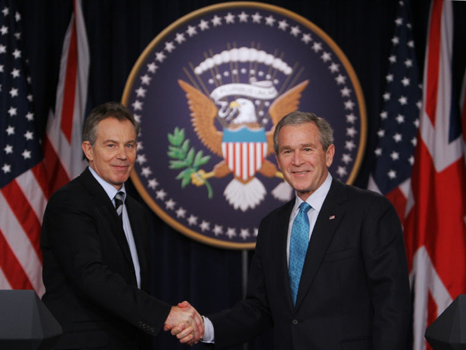 احتلت أفغانستان، موطن تنظيم القاعدة، الصدارة في رد بوش- بلير على أحداث الحادي عشر من سبتمبر. وسرعان ما أطاح التدخل بحكومة طالبان، وفرت فلول التنظيم وقياداته، إلى باكستان. وقد غذت سهولة تحقيق النتائج الظاهرية في أفغانستان، التي اتضح أنها وهمية، غطرسة المسؤولين الأميركيين والبريطانيين، وأدت إلى خطأ فادح في التقدير: غزو العراق عام 2003 لإنهاء نظام صدام حسين.