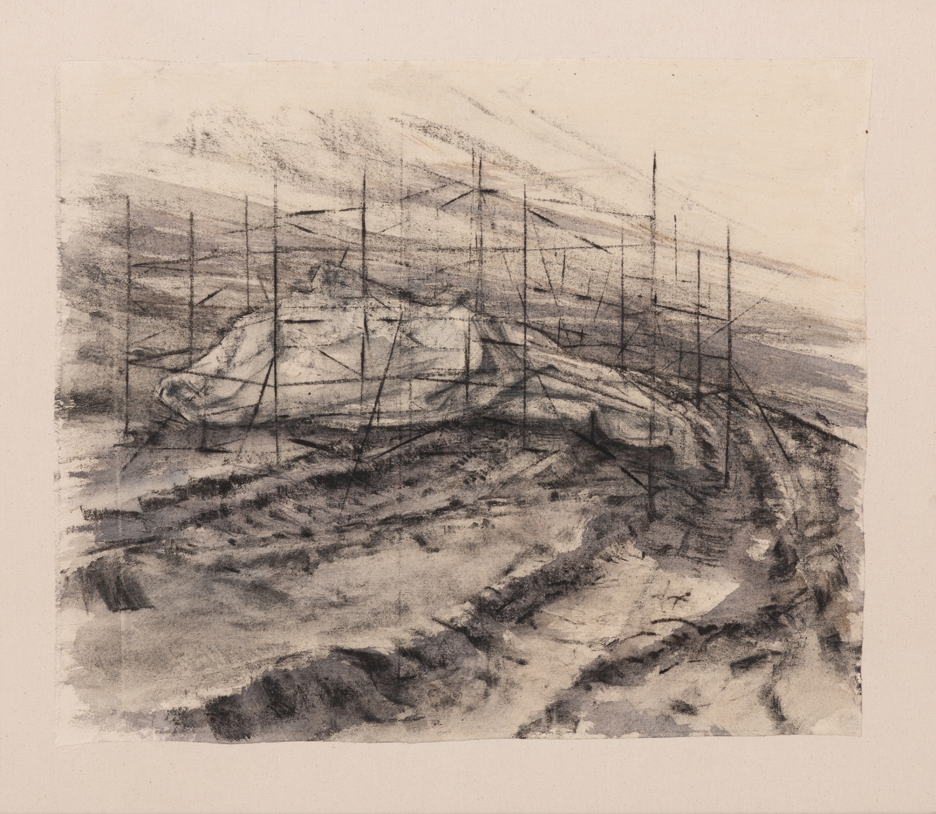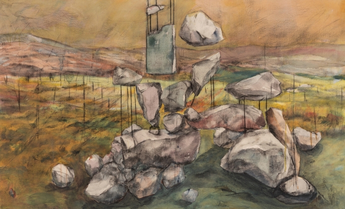 منذ معرضها السابق المعنون بـ"مناظر طبيعية برية"، التفتت الفنانة إلى صيغة تشكيلية مستحدثة أرادت بها أن تكون توصيفا لما صادفته في بيئتها، في البقاع اللبناني، من صخور وحجارة وأتربة مائلة إلى اللون الكستنائي وإلى اللون الأصفر الذي يذكر بالصحراء. رافق هذا التلوين الترابي الاصرار على جعل اللون الأزرق الرصاصي مزاجا عاما "يقلق" جو اللوحات بشكل عام. في معرضها الجديد انتقلت الزغبي إلى الإيغال في متاهة المنظومة الديناميكية والمتشنجة القائمة ما بين الحجر والبشر فتقشفت الألوان وحضر الرسم بالفحم.