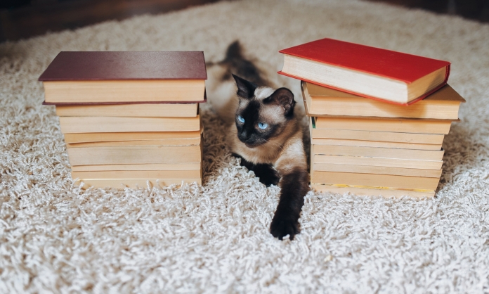 قطة في مكتبة