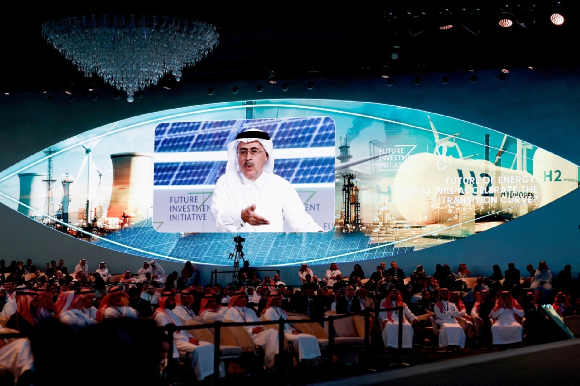 الرئيس التنفيذي لشركة "أرامكو" السعودية أمين الناصر متحدثا في مؤتمر "مبادرة مستقبل الاستثمار" في الرياض، 29 أكتوبر 2024