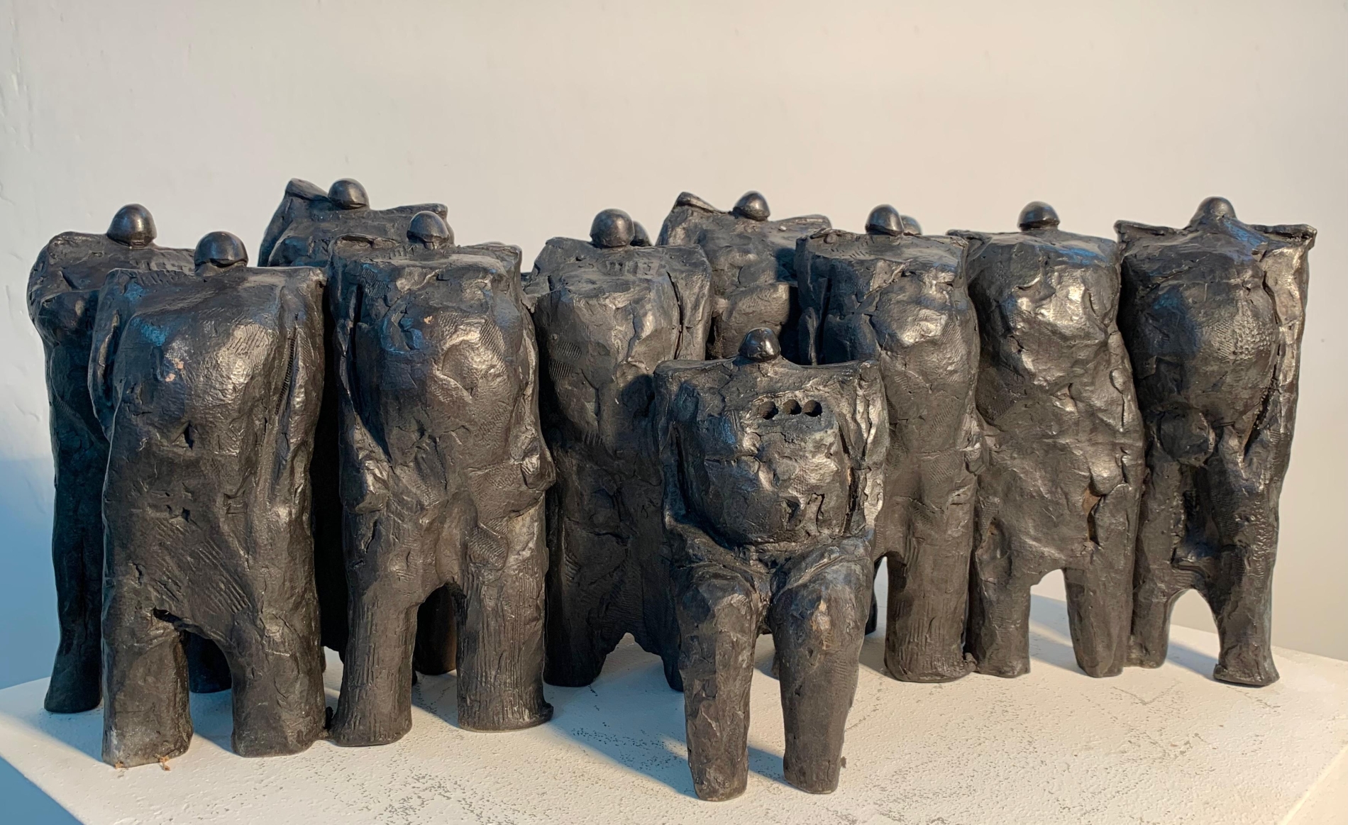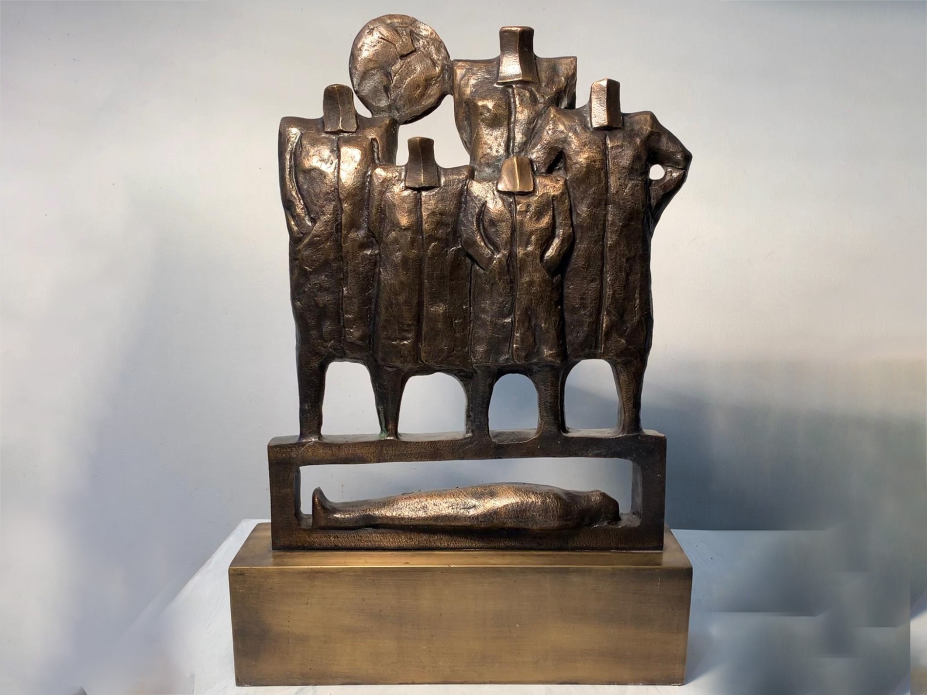 فالمسمار البابلي (الكتابة المسمارية) أو هيئة المحارب أو الكاهن تتحول في النحت إلى رموز للإنسان المعاصر الذي يعيش الصراع ذاته بين القوة والهشاشة، بين الرغبة في النجاة والخوف من الفناء.