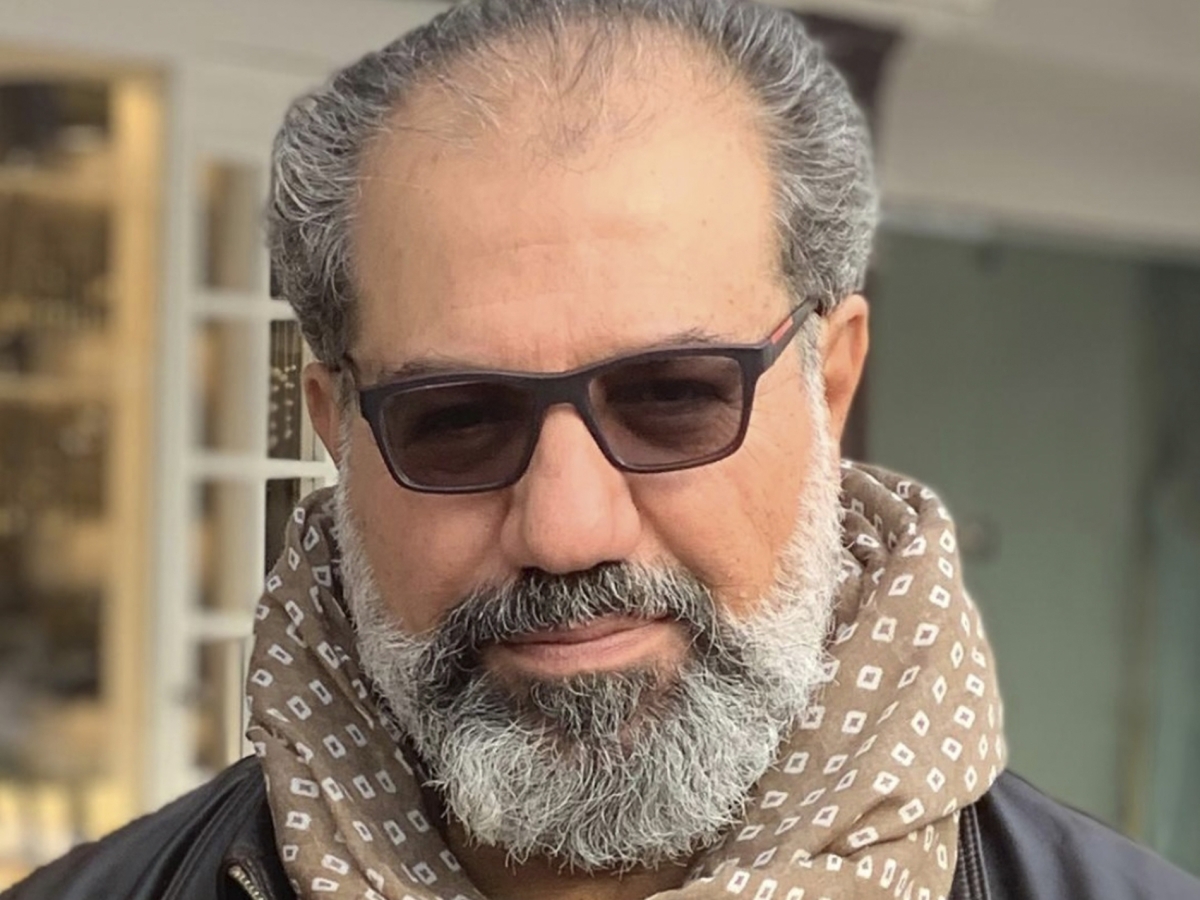 معتصم الكبيسي أمام أحد منحوتاته