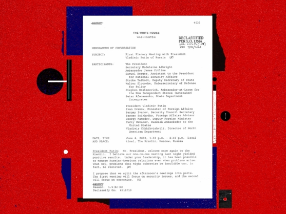جاء ذلك وفق وثائق حصل عليها أرشيف الأمن القومي عبر دعوى حرية المعلومات، ونُشرت مؤخرا. الملاحظات التي دوّنها ستروب تالبوت، نائب وزير الخارجية آنذاك، تُظهر بوتين في أكثر فتراته تعاونا وتوجها نحو الغرب، حيث كان يأمل في اندماج كامل لروسيا ضمن منظومة الأمن الأوروبية وحتى في "حلف شمال الأطلسي" (الناتو). وكان بوتين يؤكد التعاون في كل النقاط، الاستراتيجية والاقتصادية، حتى عندما كان ينوي الاختلاف. وكان قد نجح مؤخرا في إجبار مجلس الدوما الروسي على التصديق على معاهدة "ستارت-2" للحد من الأسلحة النووية، وهو ما فشل فيه سلفه بوريس يلتسين لسنوات.
