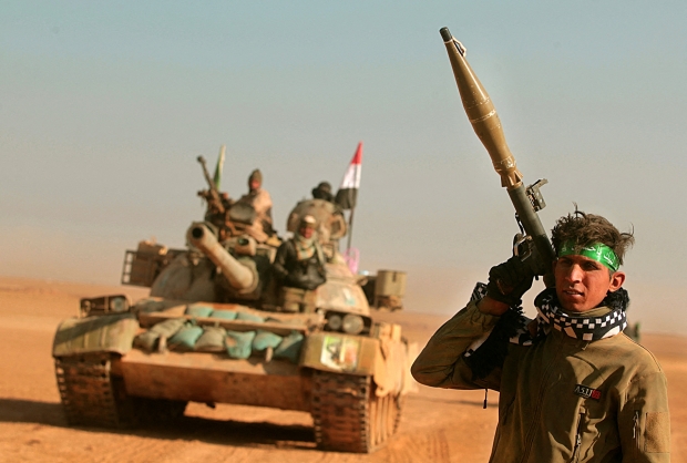 مقاتل من "الحشد الشعبي" في منطقة صحراوية جنوبي غرب الموصل في 28 نوفمبر 2016