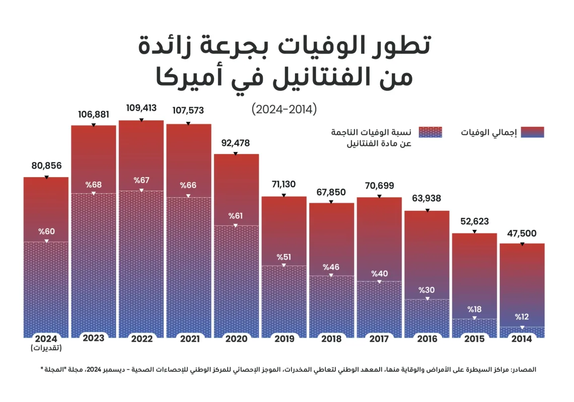 تشهد الولايات المتحدة مستويات غير مسبوقة من الوفيات الناجمة عن جرعات المخدرات الزائدة، ويعزى ذلك إلى حد كبير إلى الـ"فنتانيل" (Fentanyl)، وهو أفيون صناعي يوازي مفعوله خمسين ضعف الهيروين ومئة ضعف…