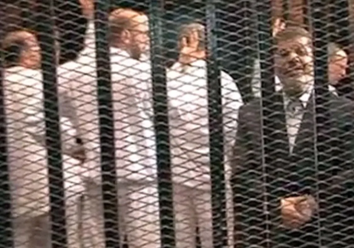 [caption id="attachment_55249953" align="aligncenter" width="620"] الرئيس السابق محمد مرسي اثناء محاكمته[/caption]