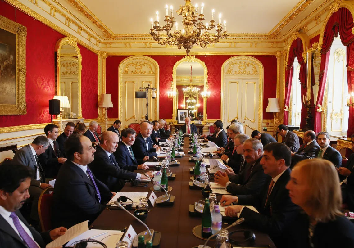 [caption id="attachment_55249008" align="aligncenter" width="620"] اجتماع لوزير الخارجية البريطاني وليام هيغ بمجموعة أصدقاء سوريا حضره سعود الفيصل وزير الخارجية السعودي ووزير الخارجية الأمريكي جون…